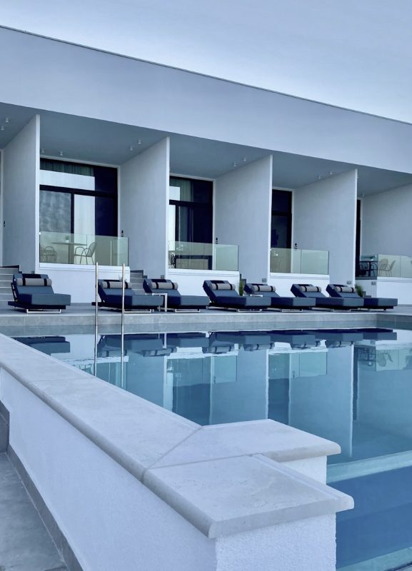 Επιχείλια πισίνας από αντικέ μπεζ μάρμαρο Ιωαννίνων.