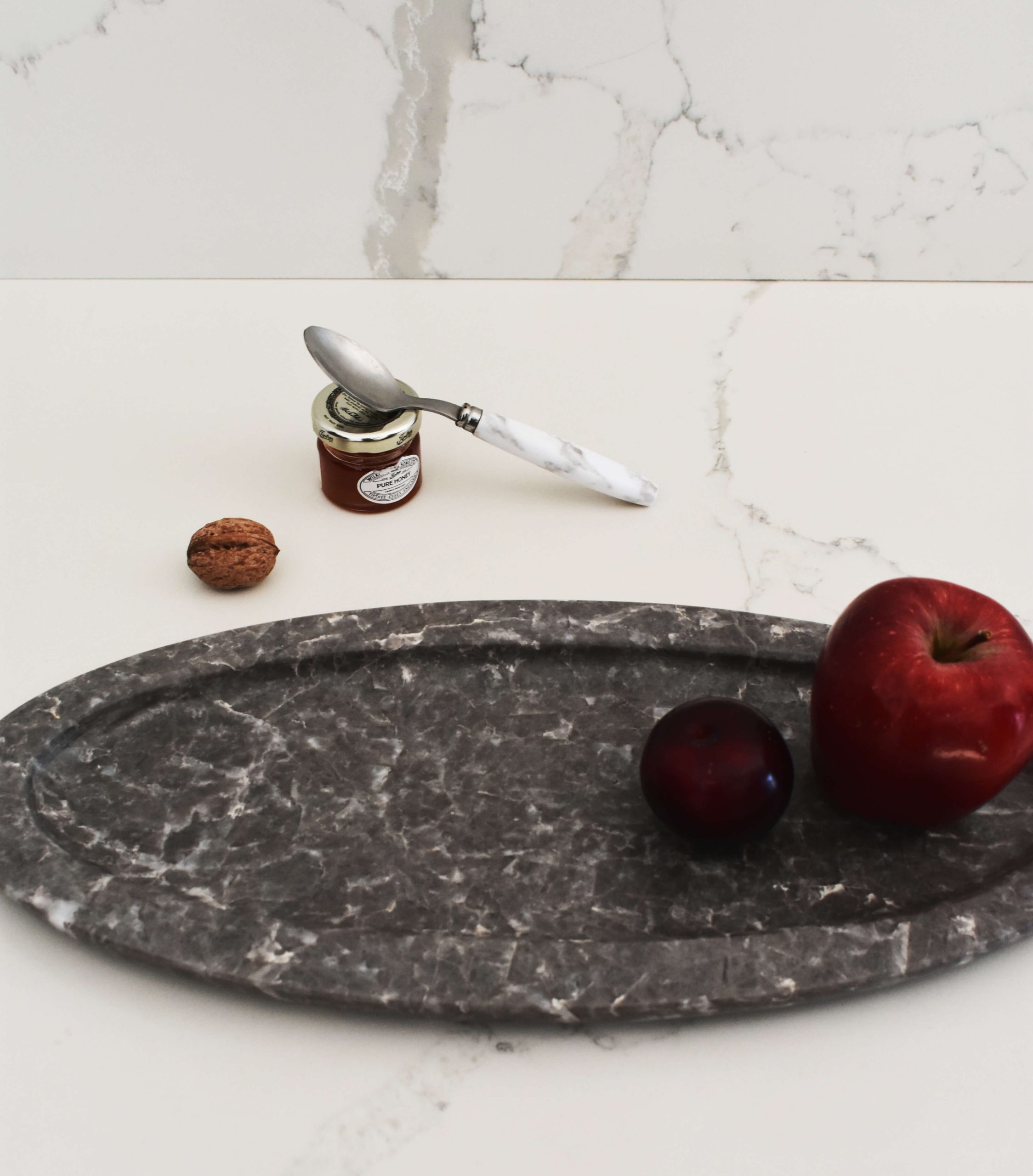 Μοναδική μαρμάρινη διακοσμητική πιατέλα σε σχήμα οβάλ και μάρμαρο Γορτύνης, οι χρήσεις της οποίας είναι απεριόριστες. Χρησιμοποιήστε τη φαντασία σας και αυτοσχεδιάστε! Υπάρχει η δυνατότητα να προσαρμόσουμε το έργο στις διαστάσεις που επιθυμείτε. Για περισσότερες λεπτομέρειες επικοινωνήστε με το τμήμα πωλήσεων στο τηλέφωνο +30 23510 38842.
